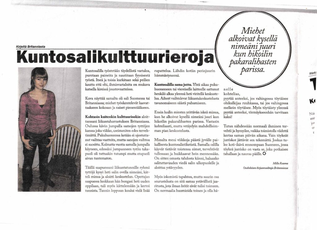 < Esimerkkijuttu: Kuntosalikulttuurieroja
